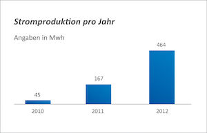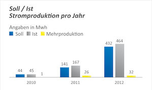 Die Sonne hat im vergangenen Jahr ganze Arbeit für unser Unternehmen geleistet: Mit insgesamt 464 Megawattstunden (MWh) lag die Stromerzeugung gut 32 MWh bzw. 7,5 % über der geplanten Energieerzeugung von 432 MWh. Für das positive Ergebnis waren jedoch nicht nur der Energielieferant Sonne, sondern auch die eingesetzten Anlagenkomponenten mit ihrer herausragenden Qualität und hohen Zuverlässigkeit verantwortlich.